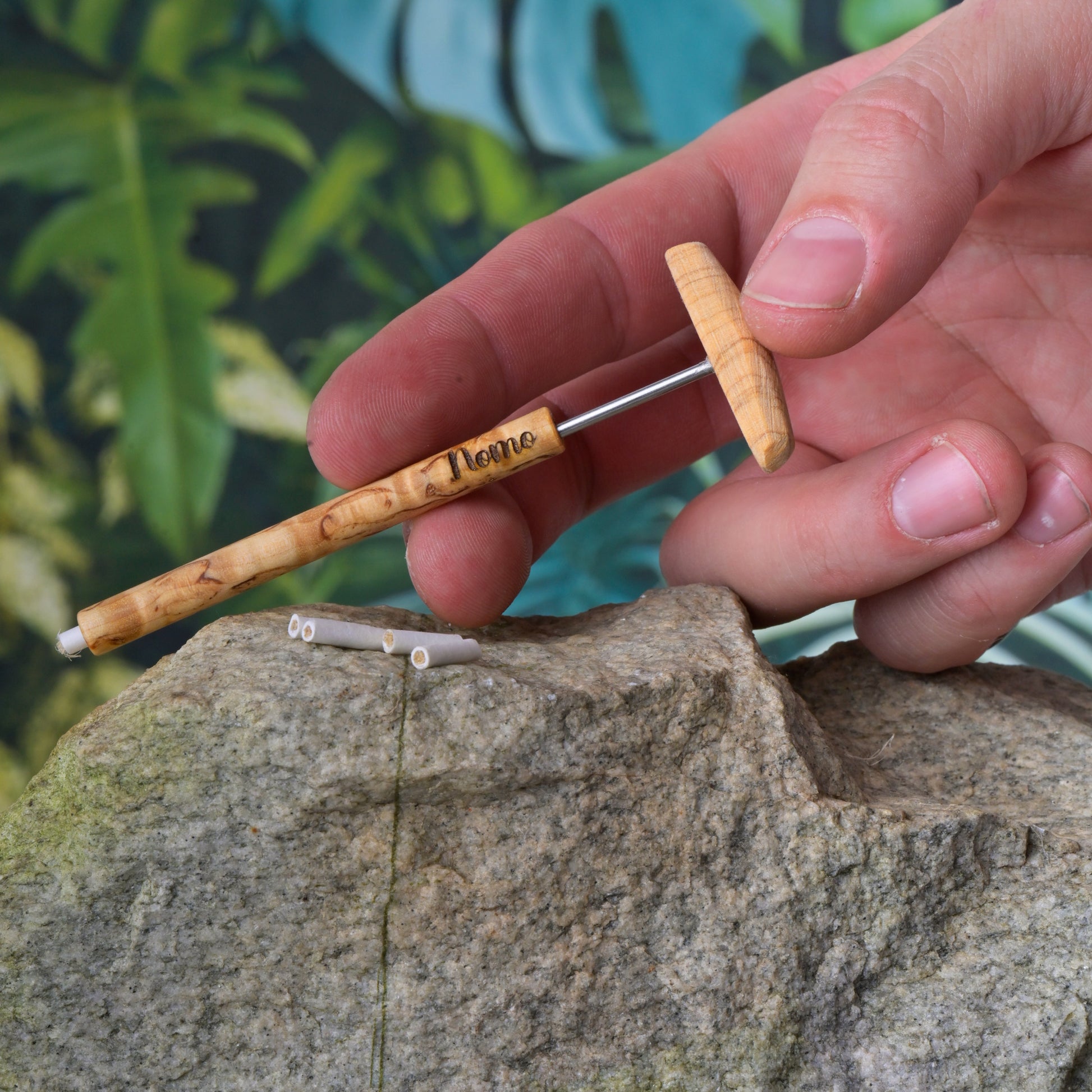 Each filter is handmade from a paper shell and hemp fibers,